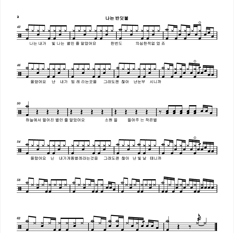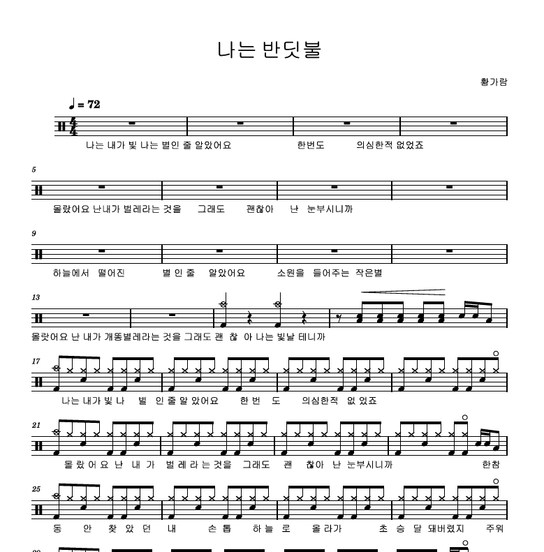 황가람에 나는 반딧불 드럼 악보 무료로 다운받으세요~
